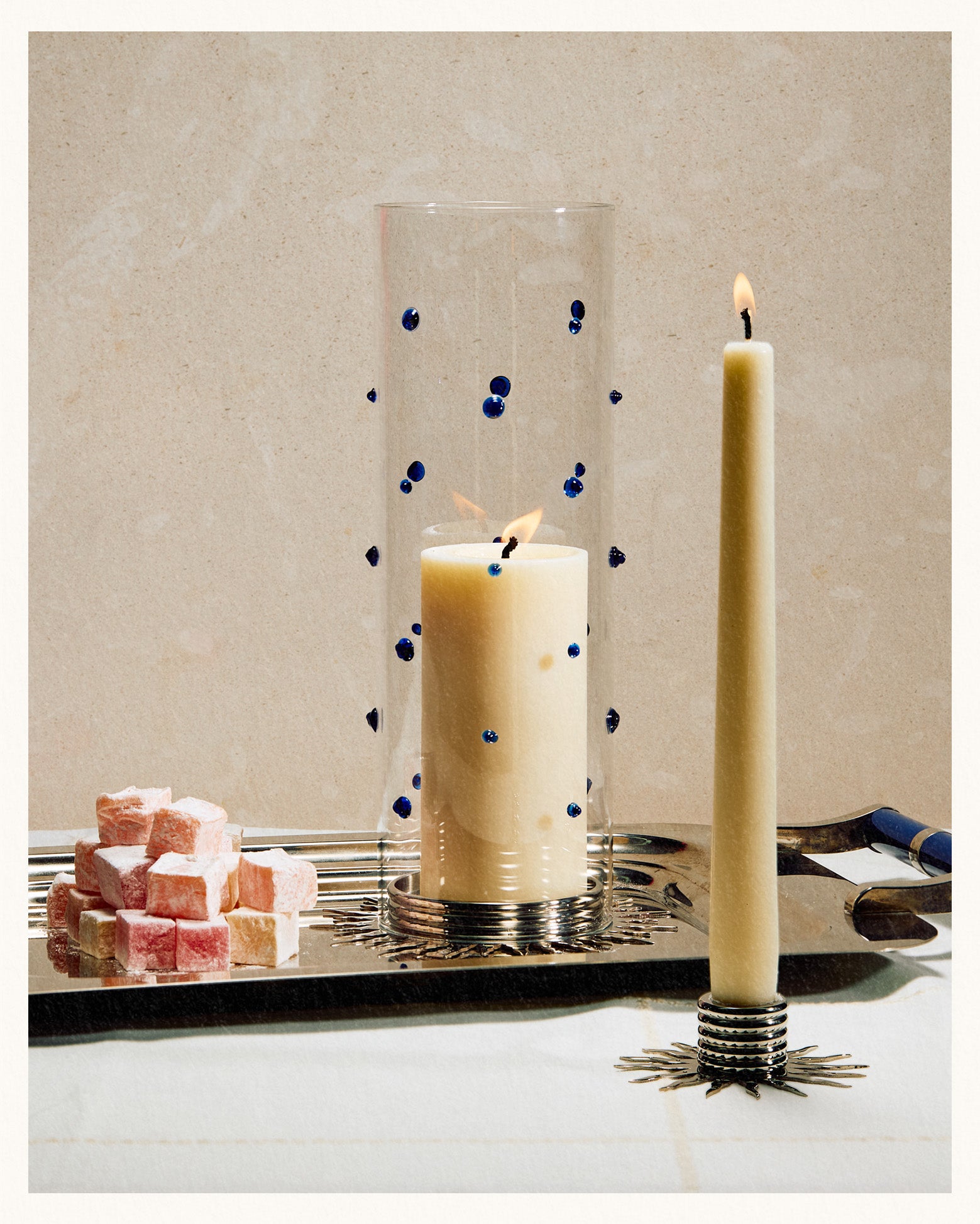 Embellished Glass Hurricane, Lapis